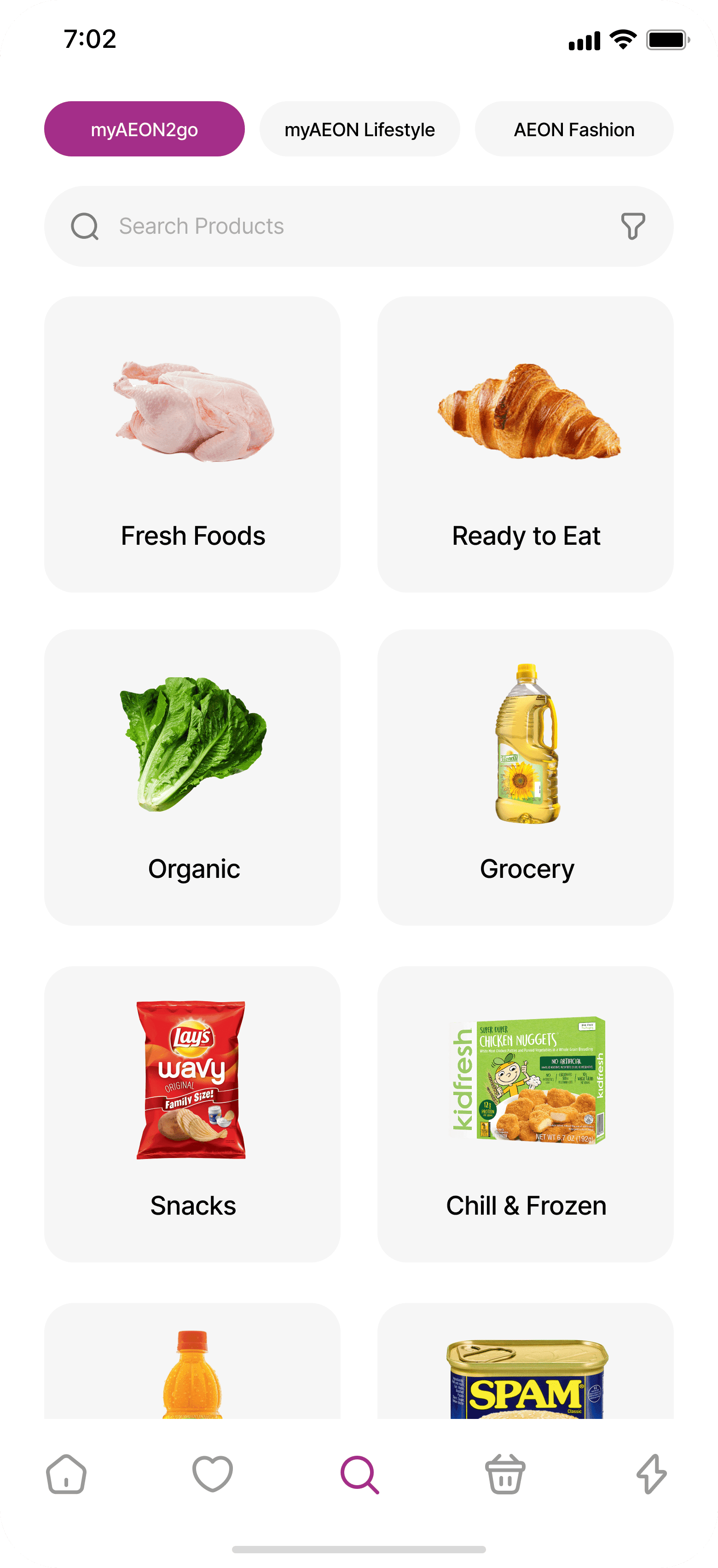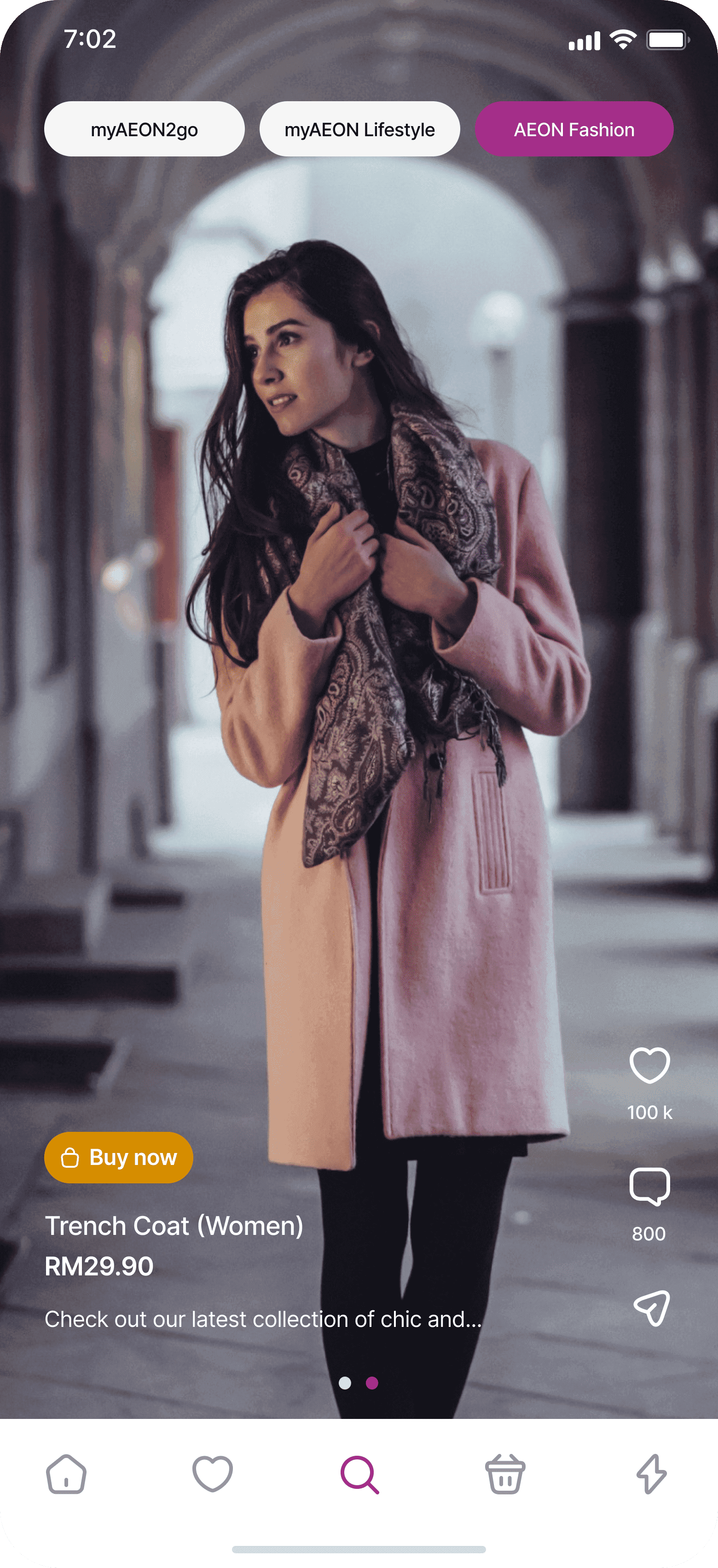 A concept for AEON’s super app, combining e-commerce and live video shopping. Users can browse products, watch live streams, and purchase items directly in-app. The redesign modernizes the interface, streamlines the shopping experience, and creates a sleek, contemporary look.