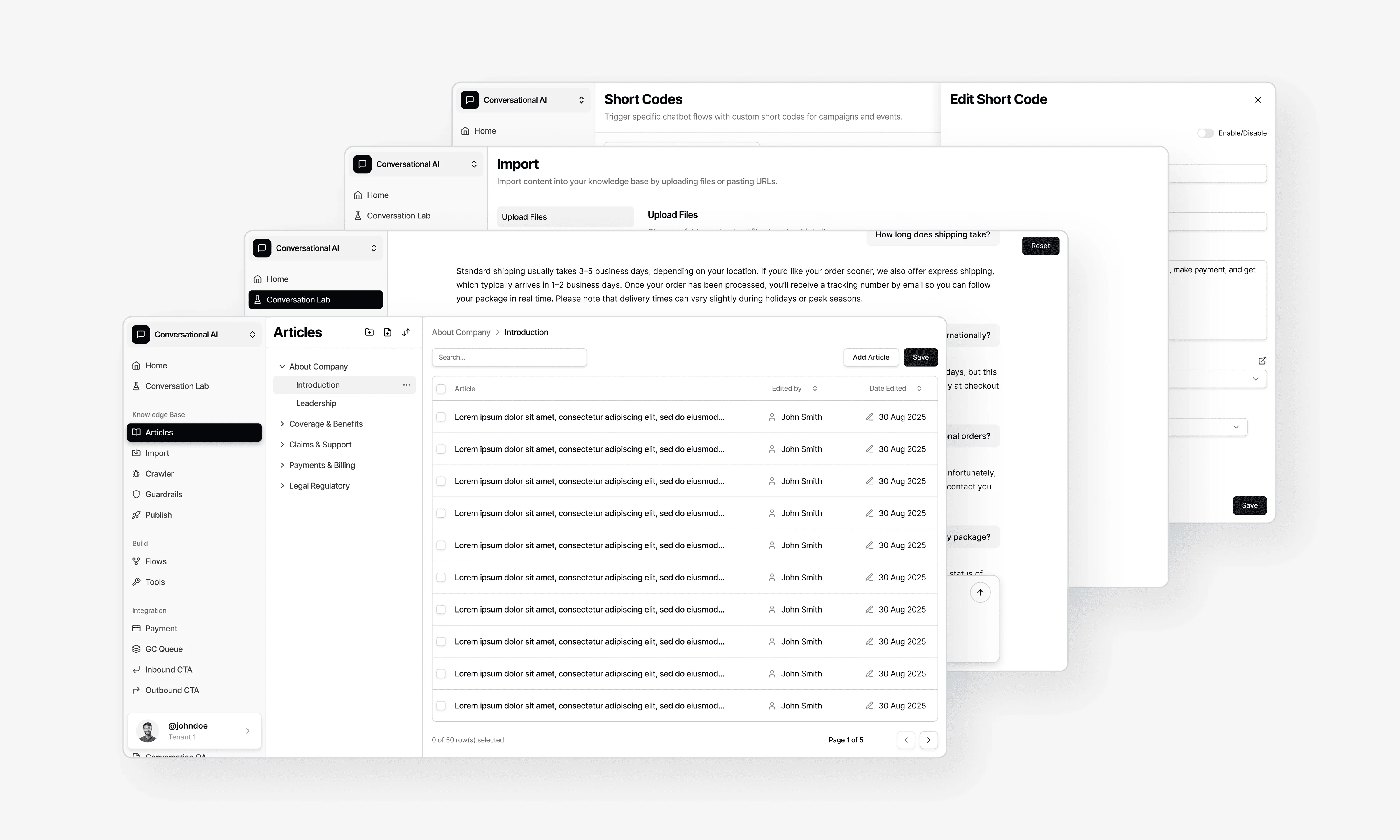 I designed it to feel like a natural chat interface: spacious bubbles, clear timestamps, and real-time responses. The lab reflects whatever content is filled into the Knowledge Base, making it easy for clients to see how their bot behaves with the latest information.
